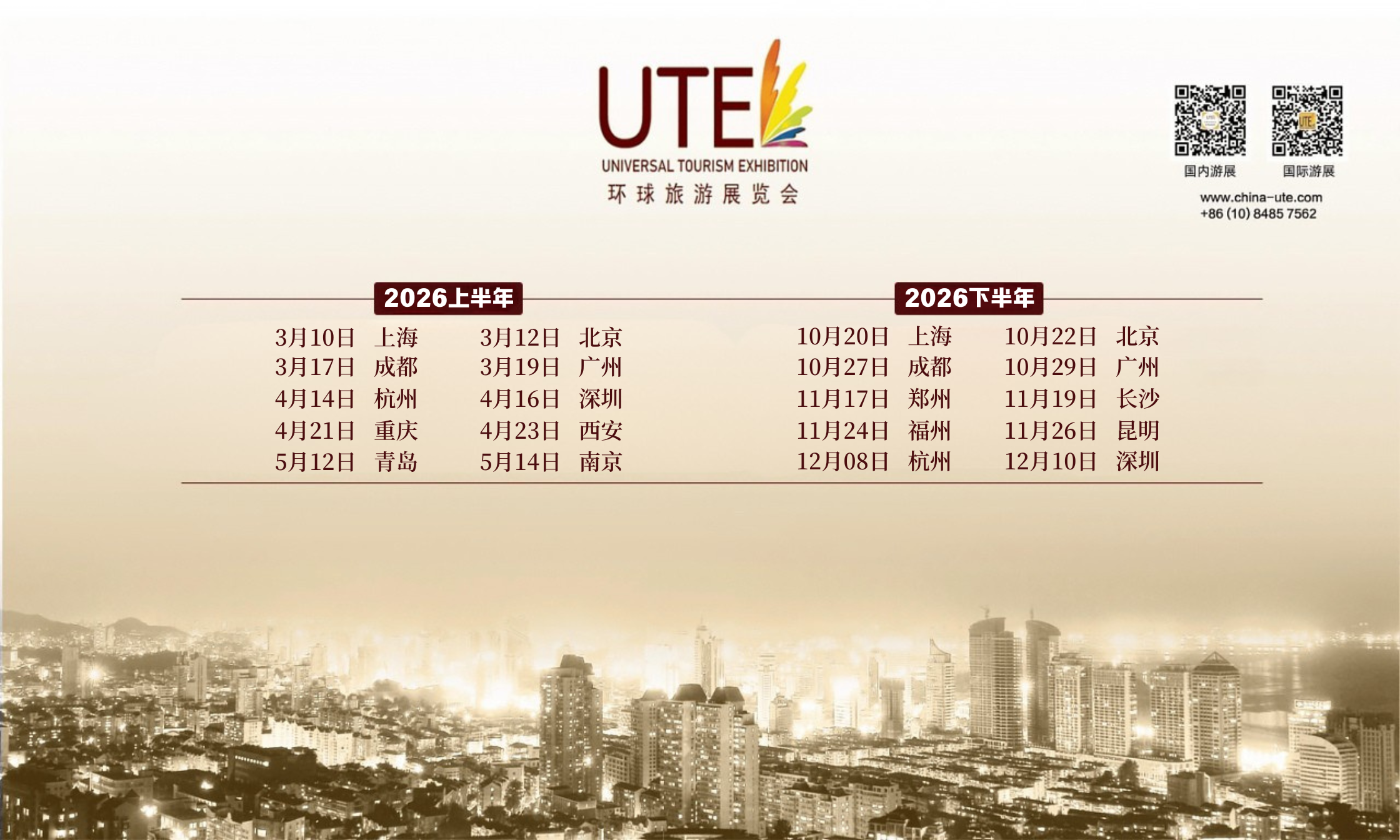 UTE-出境游展会是为中国出境旅行社、线上收客平台、游学研学、定制游、会议会展、MICE及国外地接社、酒店、度假村、旅游平台、游轮和其他与旅游相关的机构(机票、签证、旅游保险等)提供100%B2B的交流的平台。